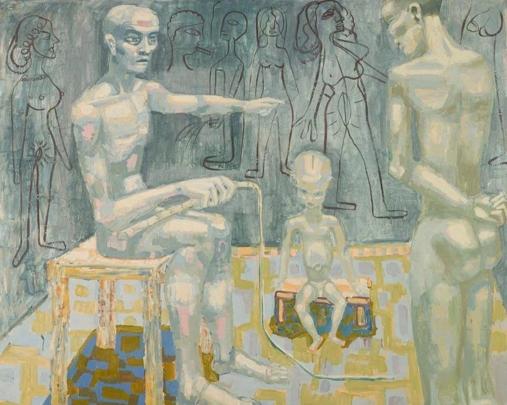Arne Ekeland, Tegningene (1937), Olje på lerret, 125 × 150 cm, ⓒ Ekeland, Arne / BONO