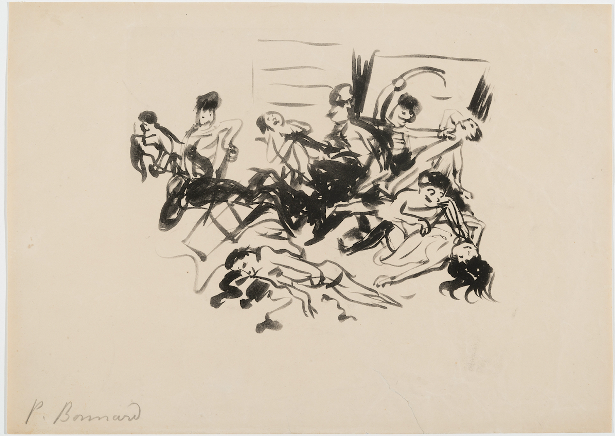 Pierre Bonnard, Orgie (før 1908), Penn på papir, 21 × 29,5 cm, Foto: Fosse, Dag / KODE.