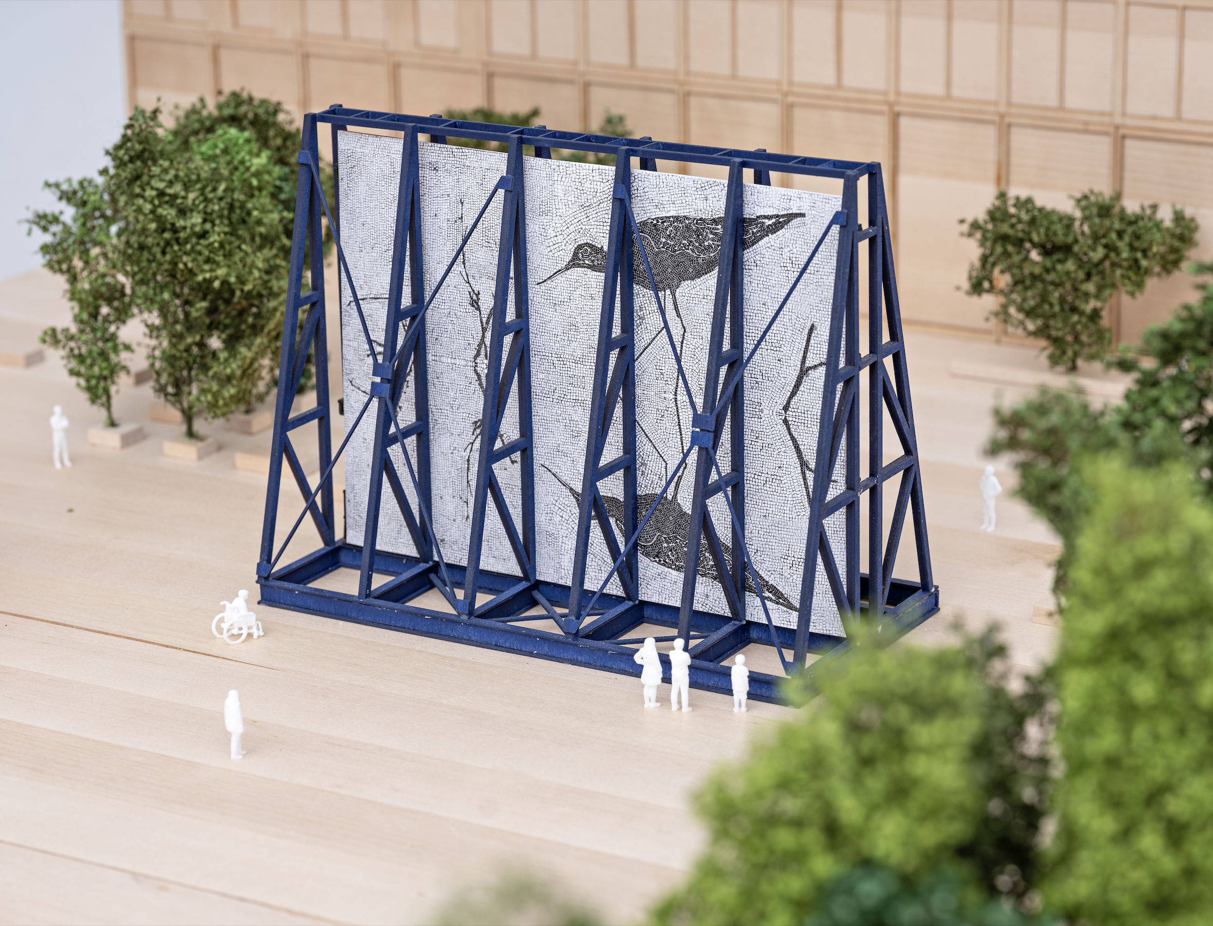 Faldbakken med modell av minnesmerket En Opprettholdelse. © Matias Faldbakken/KORO Foto: Vegard Kleven