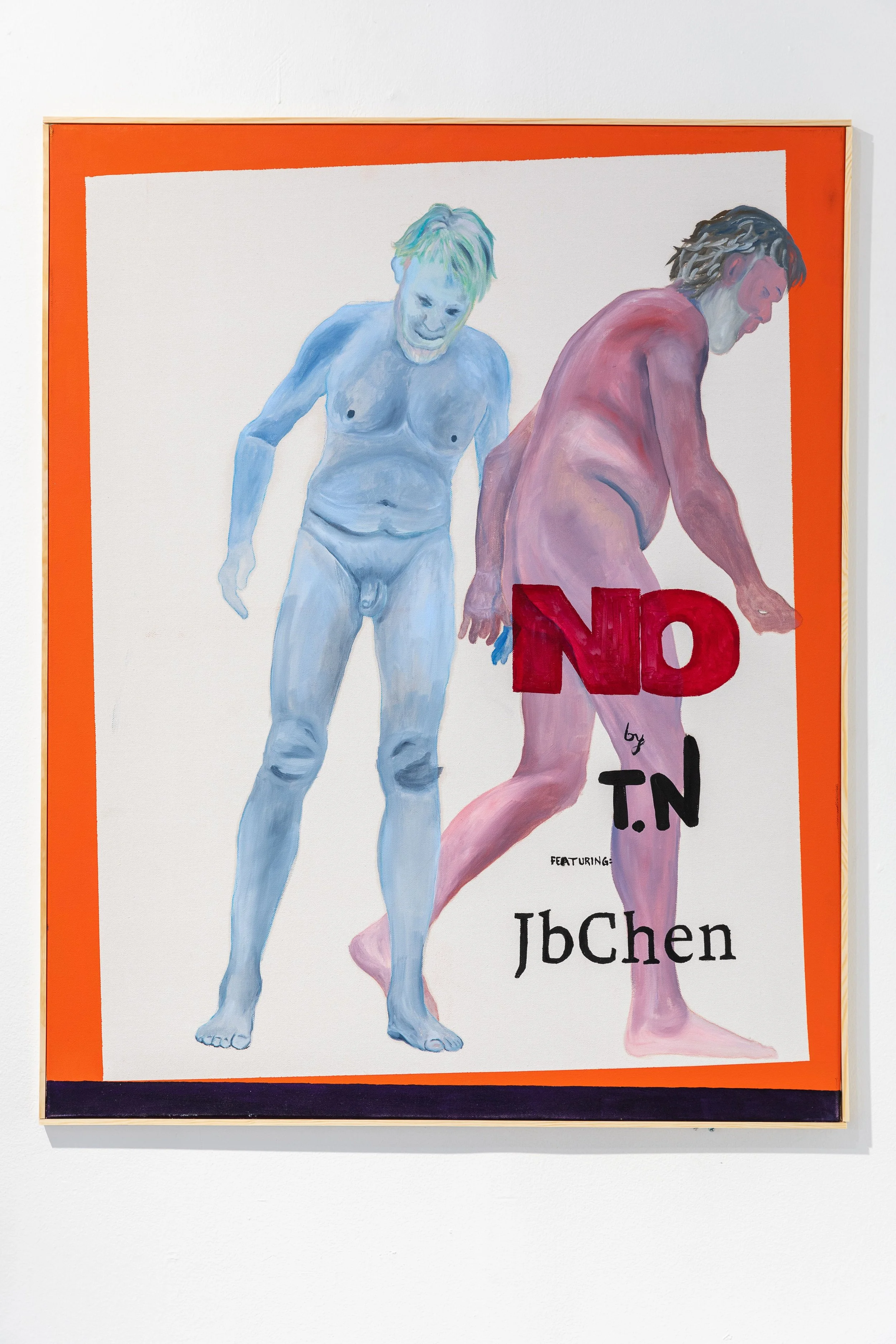 – Mye forskjellig. En del med praktiske ting, som rydding og vasking. Men JinBin har også hjulpet med å fylle inn noen av de større feltene på maleriene. I tillegg har han malt to kropper på et av verkene (refererer til verket: NO), man kan se at det ikke er jeg som har malt de kroppene, han er bedre på å male realistiske proporsjoner. Og ja, det er nytt, jeg er vant med å gjøre alt selv. Jeg tar for eksempel alltid med meg utstyr til galleriene jeg stiller ut på, jeg kan ikke stole på at andre har alt det jeg trenger, som skruer og slikt.