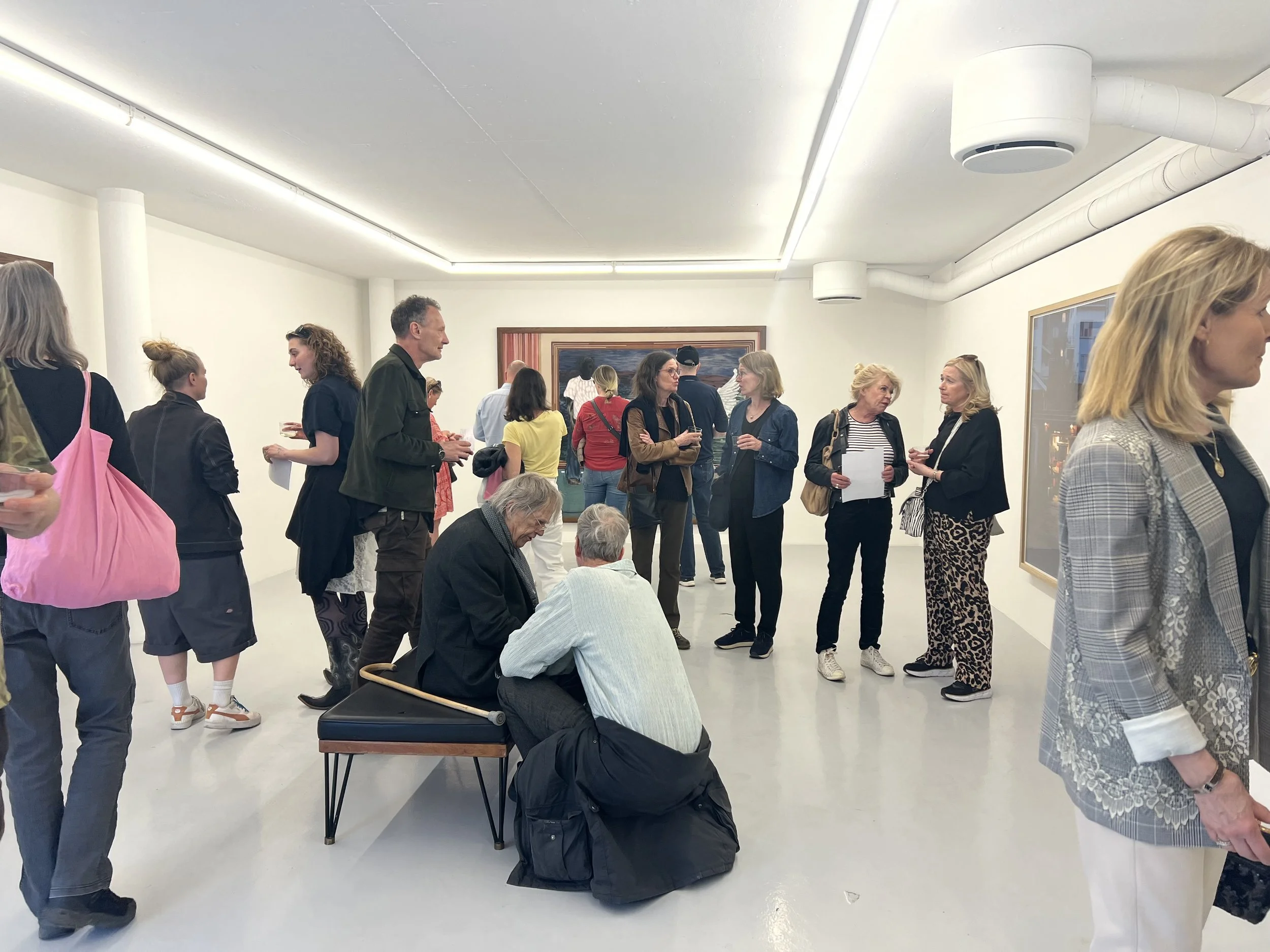 Ordene som er på alles lepper i kveld, «det er så fint å se han male igjen». Omringet av gode venner og interessante kunstnere kommer jeg i snakk med blant annet en av Crispins samarbeidspartnere og filmfotograf, mannen som poserer liggende og livløs på Stand 21, Copenhagen Live Photo #11 samt venninne fra tidlig karriere Kari Brit Kjerschow. De snakker varmt om Crispin, verkene hans og deres opplevelser av å samarbeide med ham. Utstillingen består hovedsakelig av malerier – noe tilhengerne hans tydeligvis beundrer. I tillegg stilles det ut et fotografi og en skjerm der tidligere filmverk vises. Alle verkene baserer seg på tidligere installasjoner.