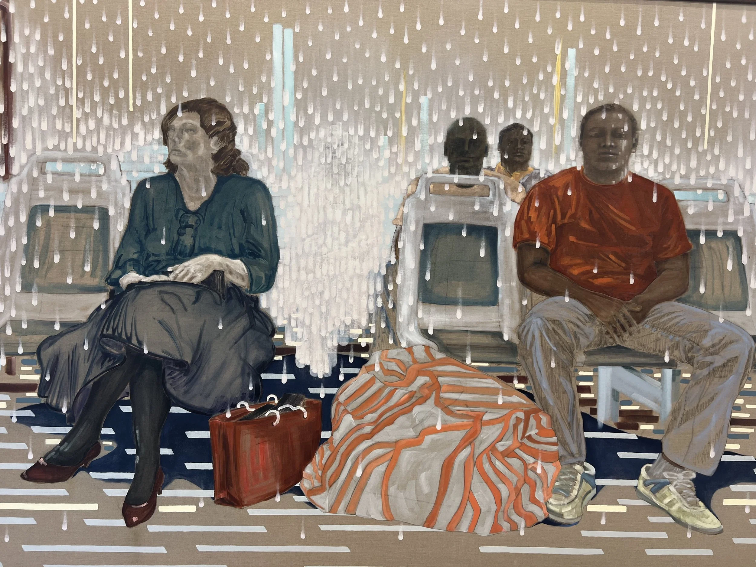 I den nedre delen av det todelte galleri-komplekset henger det store 185 x 256 cm malerier og et fotografi av tidligere Live Photo installasjoner. Rommet er fylt med gyldent og lunt ettermiddagslys som passerer gjennom store, vidstrakte vinduer. Et av maleriene, Venezia, Live Photo #14, griper både min og flere andre besøkende sin oppmerksomhet. Det er et stort maleri av prosjektet Live Photo #14 som ble filmet i Venezia i 2007. Avbildet er fire mennesker antagelig på en type rutebåt. Det sitter en kvinne trolig av sør-europeisk opprinnelse på venstre side, og tre menn, antagelig av afrikansk opprinnelse, på den speilvendte seteraden. Bilde er sterkt i symbolikk. Det tematiserer klasseforskjeller og trigger ufrivillige assosiasjoner til segregering. Kvinnen som sitter på fremste rad til venstre, i ført i luksuriøse klær, påkledd i pen bluse, voluminøst skjørt og høye røde hæler, har fått det sidestilte ansiktet vendt vekk fra resten av passasjerene malt grått. I motsetning til kvinnen som er forholdsvis farveløs – foruten den røde handleposen og de røde hælene – er mennene på høyre side gjengitt i lysere og mer vibrante farger. Mannen i terrakotta-oransje t-skjorte, jeans og joggesko ser forsåvidt tilfreds og nøytral ut i forhold til den pent kledde damen som uttrykker misnøye med en nedovervendt munn. I motsetning til kvinnen som har vridd kroppen i motsatt retning av mennene, sitter mennene på høyre side med et avslappet og symmetrisk kroppsspråk. Sterkt symbolsk står to polariserte poser mellom kvinnen og mannen på hver sin side av den midtskilte første raden. Kvinnen med de røde skoene har en tilsvarende rød, stiv og kostelig handlepose, som gir uttrykk for at hun akkurat har kjøpt en veske til et par ti-tusen. Den avslappede mannens svar på den dyre posen er en mye romsligere, simpel og nøktern saggete type oppbevaringsveske, trolig laget av plast. Kontrasten mellom eiendelene deres peker til en sosial-økonomisk klasseforskjell. Problematikken i maleriet tydeliggjøres av den velstående kvinnens kroppsspråk, som vender seg vekk seg vekk i avsky fra grunnleggende likeverdige menn av en annen sosial-økonomisk og etnisk bakgrunn enn seg selv. Et samfunnsproblem av systematiske, generasjonelle rasistiske holdninger og atferdsmønstre tematiseres med behendighet i dette verket. Hvite, lange og dråpeformede børstestrøk regner ned rundt menneskene og adskiller dem spesielt i midten. Strøkene minner om regn eller snø, og merkes som en kulde i rommet mellom kvinnen og de tre mennene. Maleriet oppleves skisseaktig, og er preget av en interessant blanding av naturalisme og nyekspresjonisme med en pointillistisk effekt. Menneskene og det menneskapte i bildet er naturalistisk fremstilt, samtidig som motivet opptar en fri form med ulike børstestrøk, former og taktilitet.