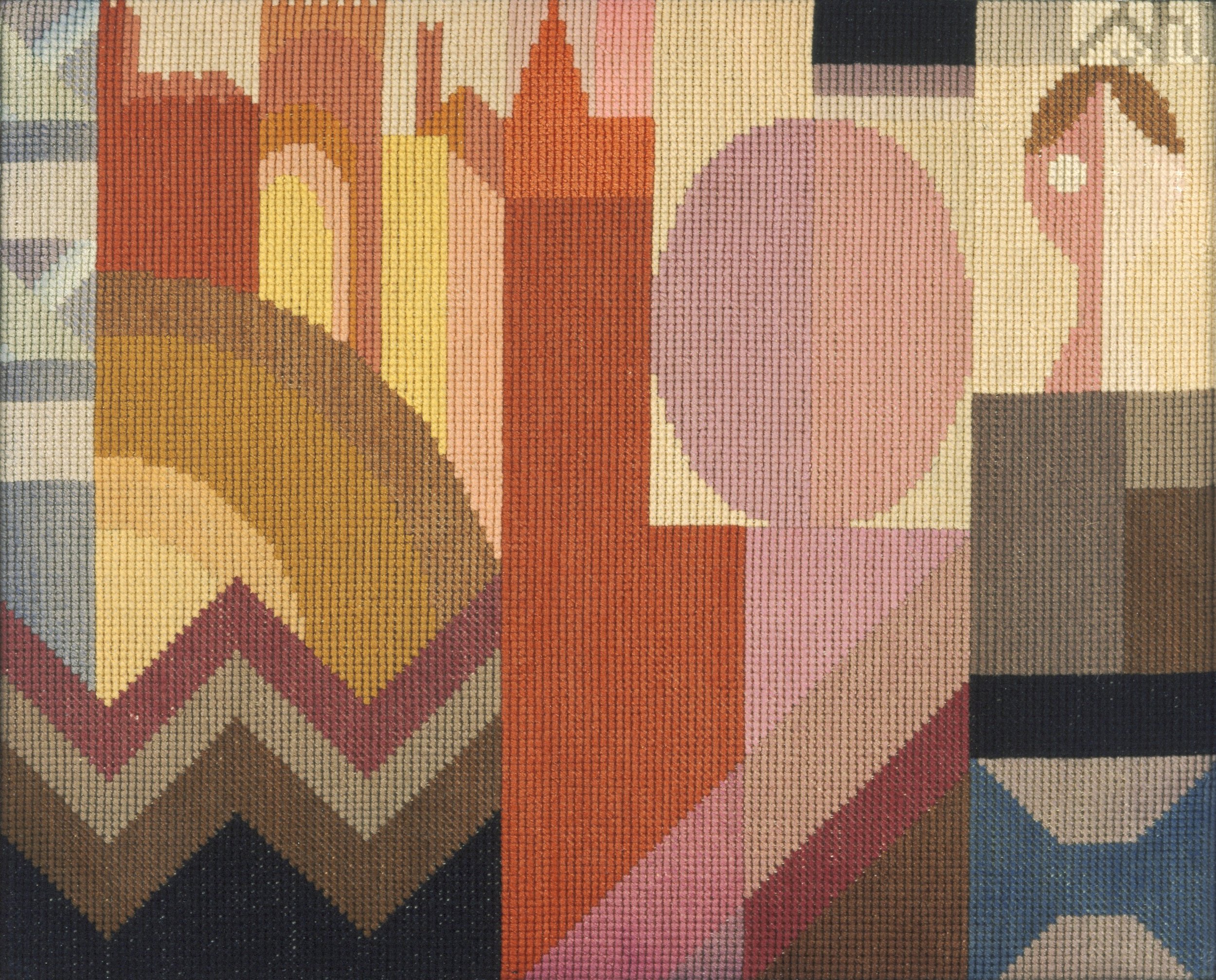 Sophie Taeuber-Arp, Uten tittel, ca. 1920, broderi, ull på lerret, 32 x 40 cm. Privat eie, deponert hos Fondation Arp, Clamart. Foto: M. Nguyen / Fondation Arp, Clamart