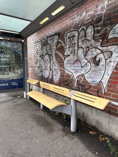 Med estetisert hostile design, er det lettest å ta for seg benkene. Det finnes utallige versjoner, og alle har mest sannsynlig vært bort en av disse. Ta for eksempel benkene man finner på bussholdeplassene rundt om i Oslo. De har blitt kortet ned, slik at man ikke får plass til å ligge, og benkene har blitt buet, slik at det blir ubehagelig å ligge hvis man likevel skulle prøve. I tillegg finner man disse platene man er ment til å lene seg mot, og jeg blir med en gang skeptisk på hvorfor disse har blitt satt inn fremfor å utvide benkeplassen. Andre populære løsninger er benker med et moderne og “artig” utseende. Lignende design har blitt mye brukt ettersom de utfører flere oppgaver enn å bare være atferdskontrollerende. De fungerer også utsmykkende for offentlige rom, i tillegg til å skape sosiale soner. Man kan se hvorfor disse er å foretrekke over gamle benker som er justert med armlen mellom hvert sete.