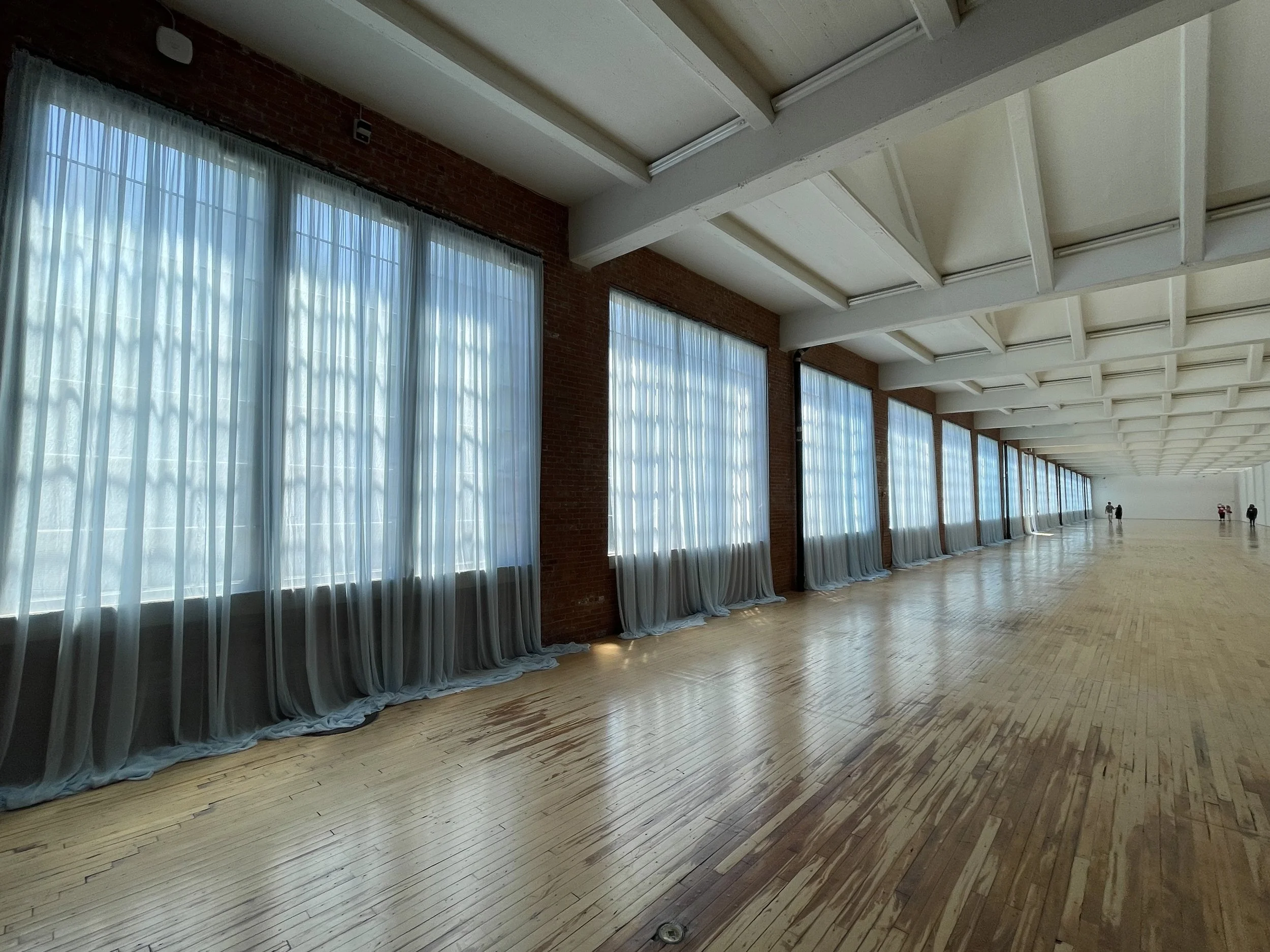En annen utstilling som er annonsert for dette året er av Felix Gonzales-Torres. En ett-verks utstilling som rommer en hel vegg i ett av de fantastiske rommene til Dia Beacon. Verket har blitt vist flere steder tidligere, og verkets dimensjoner tilpasser seg rommet det henges i. På Dia Beacon tror jeg nok det er den største versjonen som har blitt vist hittil. Verket i seg selv består av transparent blå tekstil og et opphengssystem som ble laget i 1989. Tekstilet er såpass langt at det legger seg i folder på gulvet. Fargen blå ble av Gonzalez-Torres ofte brukt for å symbolisere kjærlighet og skjønnhet, men også frykt. Untitled (Loverboy) trekker queer politikk og sensitivitet inn i utstillingsrommet og belyser skillet mellom det det private og det offentlige, det som er innenfor og det som er utenfor, det hjemlige og det institusjonelle.