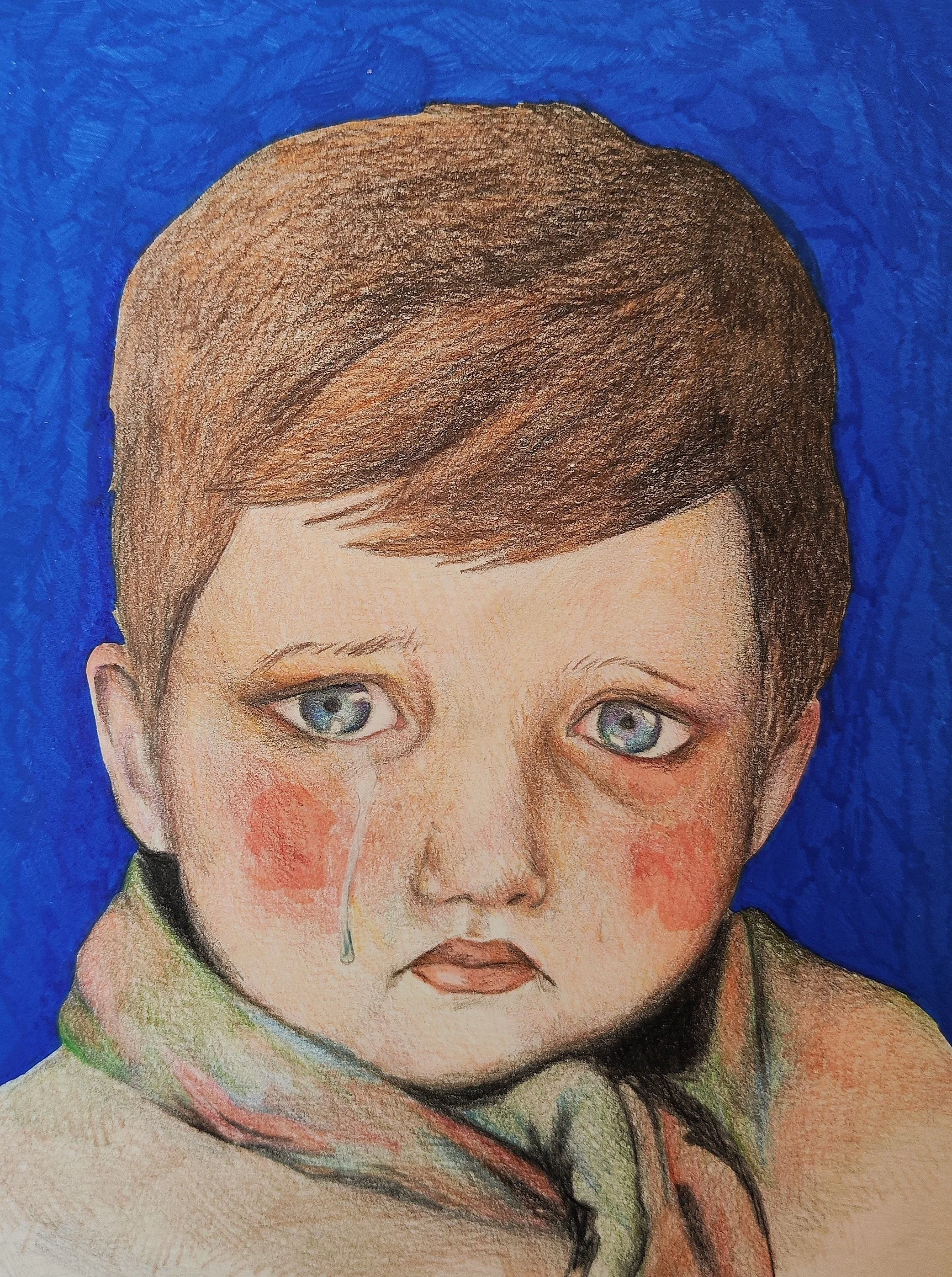 Illustrasjon av Elise Enge Mjånes, etterligning av “the crying boy”.